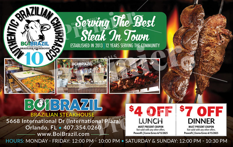 BoiBrazil Brazilian Steakhouse offers a traditional Brazilian dining experience with a variety of grilled meats served rodizio-style.