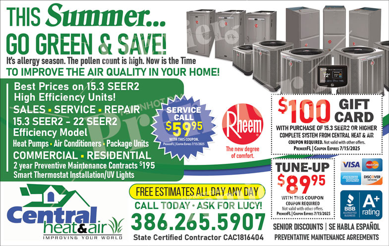 Home Air Conditioning & HeatingDaytona BeachCentral Heat and Air LLCCoupons
