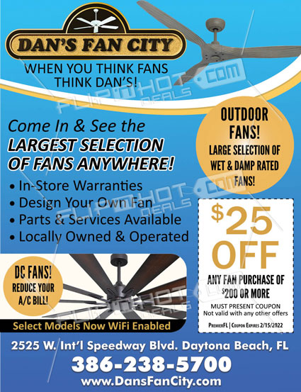 Dan’s Fan City offers the largest selection of ceiling fans anywhere — with hundreds of styles, customizable designs, and expert assistance to match your home perfectly. Locally owned and operated, they’ve been keeping Florida cool since 1979.