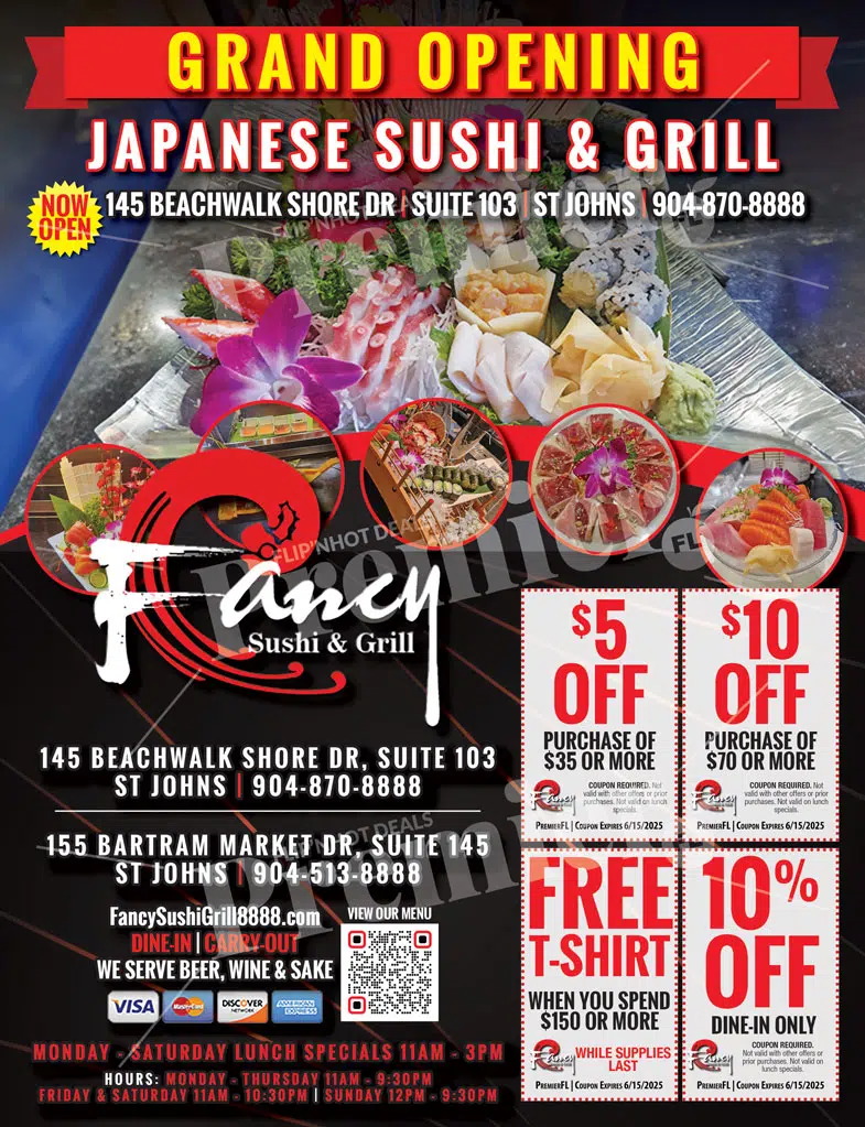 Home Asian FoodSt. AugustineFancy Sushi & Grill Coupons