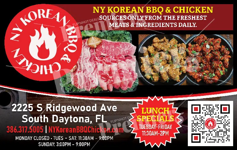 NY Korean BBQ & Chicken is a restaurant featuring Korean barbecue and fried chicken dishes. Customers cook meats at their table, enjoying traditional sides, sauces, and a communal dining experience.