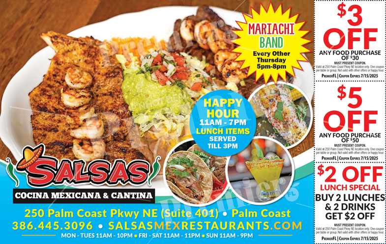 Home Food & DrinkBunnellPalm Coast Salsas Mexican Restaurant Coupons