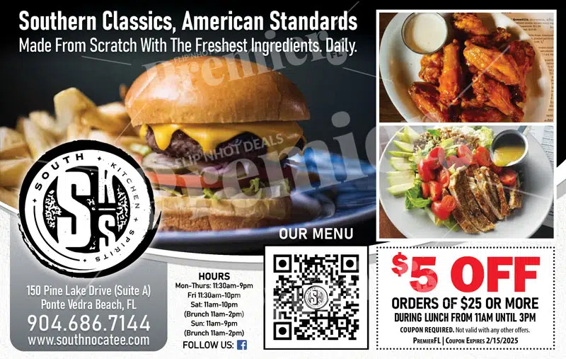 South Kitchen & Spirits is a vibrant dining destination offering a diverse menu in a lively atmosphere. They feature a variety of dishes and drinks, providing a welcoming space for guests to enjoy quality food and beverages.