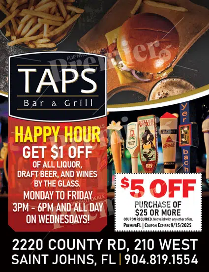 Taps Bar and Grill is a casual dining establishment known for its craft beers, signature burgers, and wings. They offer indoor and outdoor seating, live music, and a friendly environment for guests to relax and socialize.